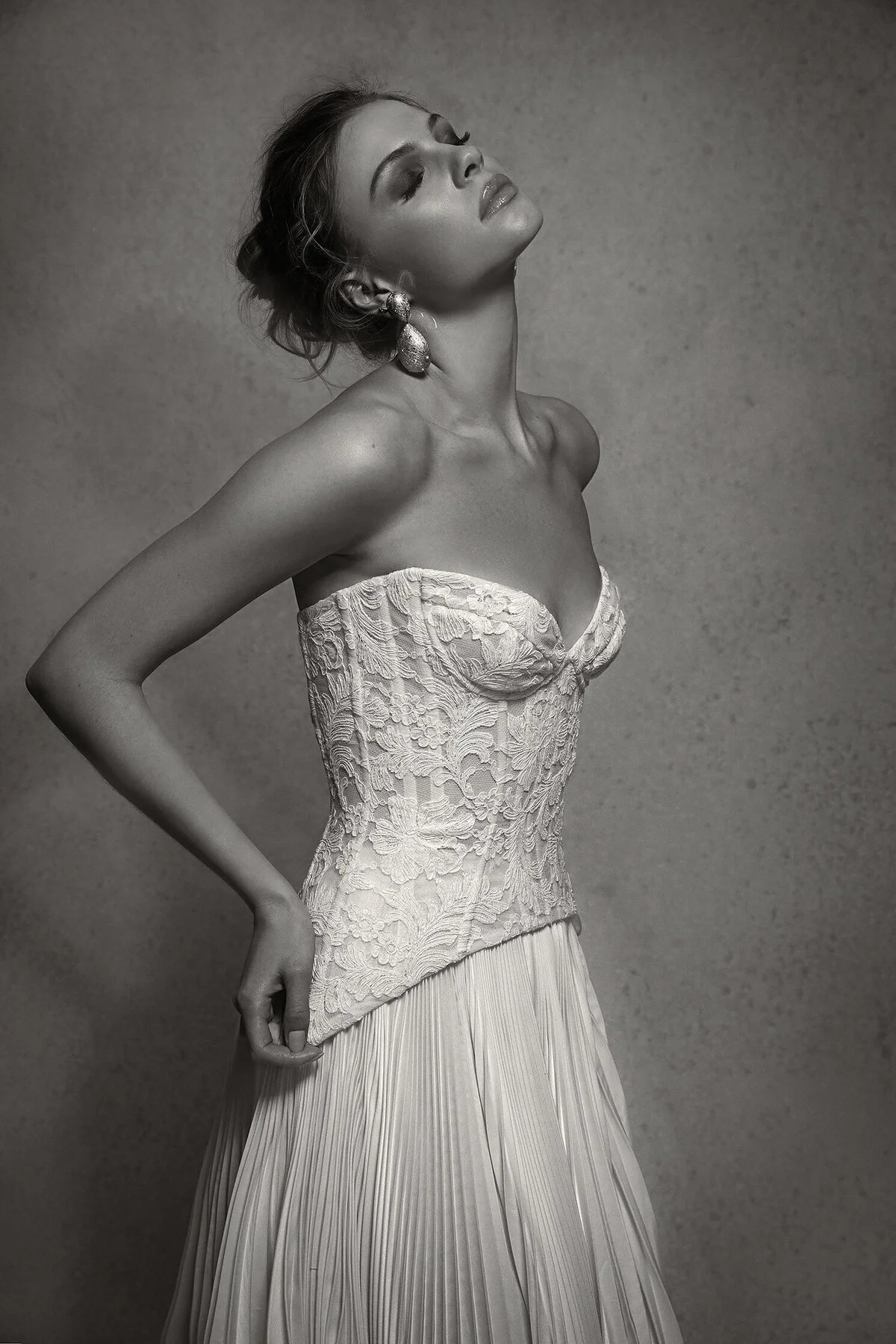 To explore the Sept collection of gowns and separates, we kindly ask that you book a dedicated Sept New York appointment. The collection is not available to try on outside of these appointments.